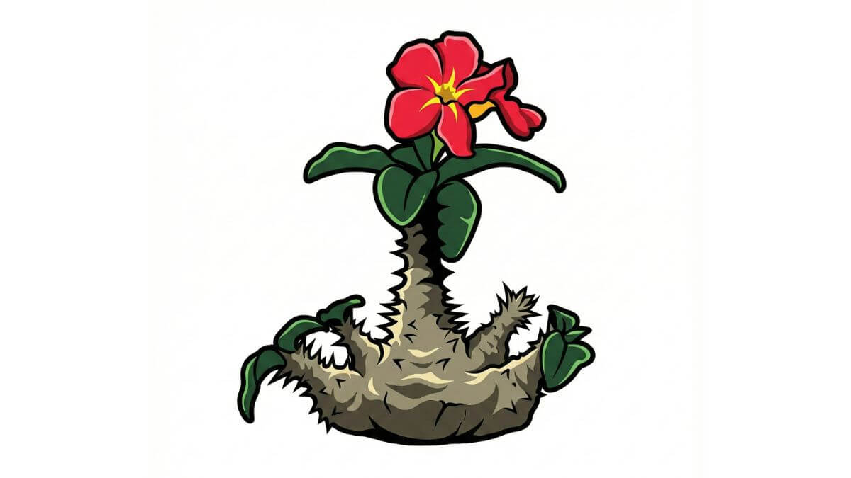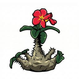 - 最大の特徴: 塊根植物らしい丸い樹形と、目の覚めるような赤い花。